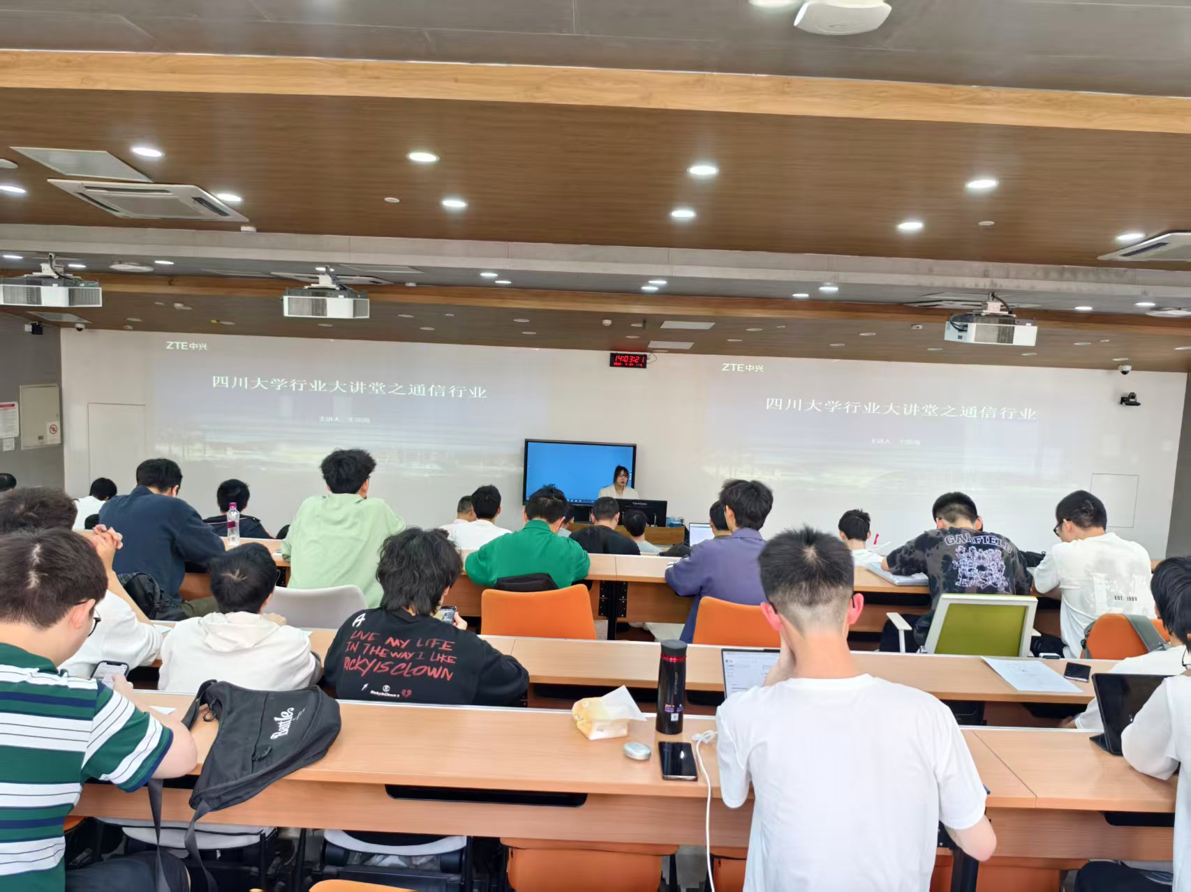 为深化校企合作,拓宽学生专业视野,了解通信技术前沿最新发展动态,2026年4月24日下午,行业大讲堂之通信行业在望江校区基教C座C101成功举办。本次活动由四川大学就业指导中心与bat365在线体育登录联合主办,我们特别邀请中兴通讯经理王思雨担任主讲嘉宾,通过专题报告与互动问答相结合的形式,为学生提供了了解前沿科技、感受产业创新的宝贵机会。
