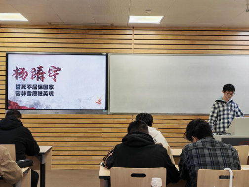 随后,在“红途轮忆,青讲党史”分享会上,王可小组讲述了杨靖宇将军在极端艰苦环境中坚守抗日前线、壮烈殉国的英雄事迹;弓紫艳小组从三湾改编的制度创新、抗日烽火的民族抗争到现代阅兵的国威彰显,串联起人民军队的发展脉络,强调要从历史中汲取力量,走好新时代强国强军路;林璐瑶小组分享了三线建设时期各族人民艰苦奋斗、为国奉献的创业故事,彰显了自力更生的建设精神;白陈宏羿小组则聚焦三湾改编至古田会议的关键节点,梳理了人民军队政治建军原则的确立过程。