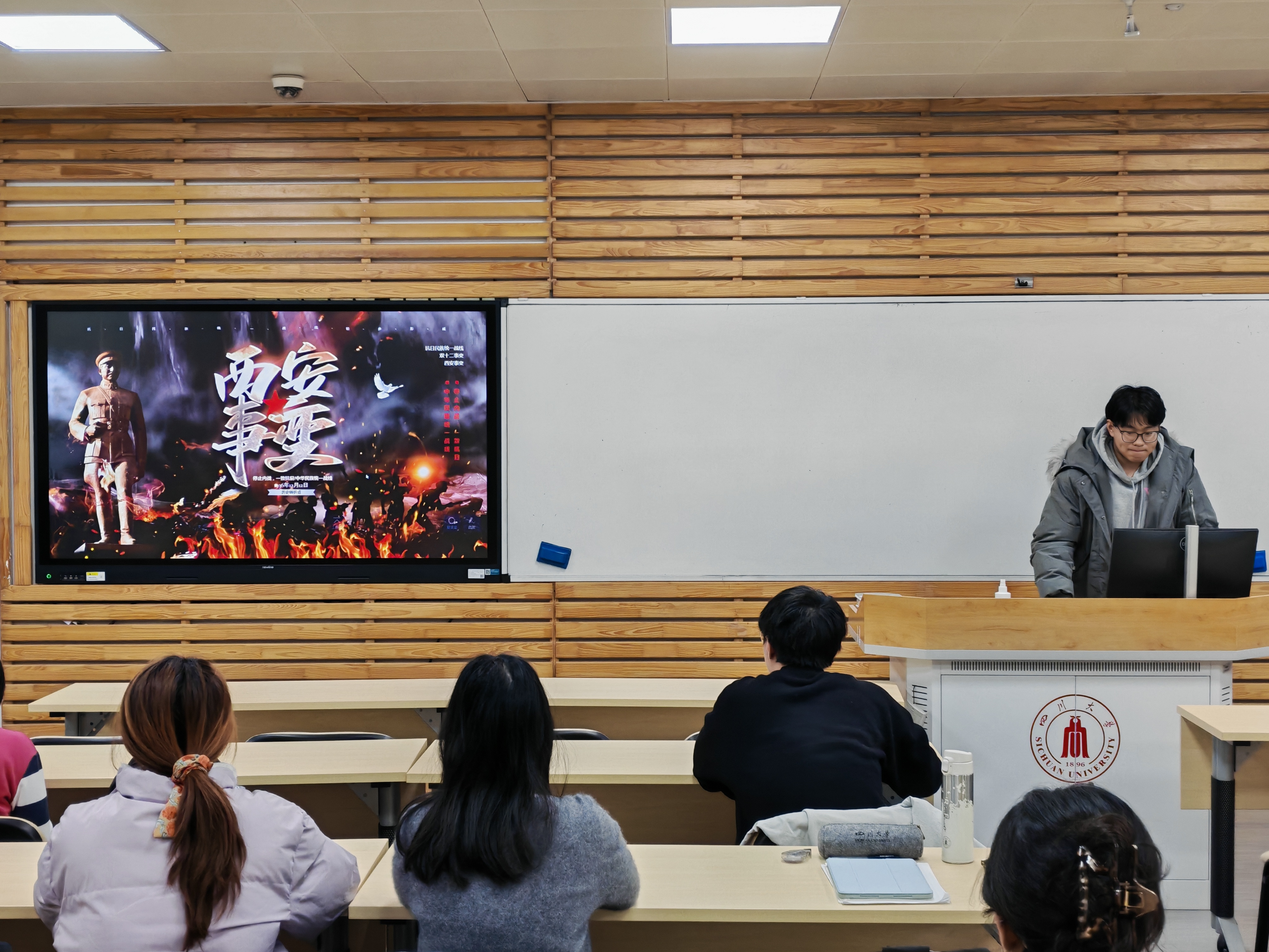 随后,白陈宏羿小组分享了中国寄生虫病防治史,展示了中国共产党的领导下新中国面对寄生虫病的科学防治策略。马梓轩小组介绍了焦裕禄在兰考带领群众治沙、治水、治碱,身患重病仍坚守一线的事迹,其精神丰碑永立人心。张博涵小组解析了西安事变,回顾了张学良、杨虎城以民族大义兵谏蒋介石抗日的壮举。最后,邰诗熳小组讲述了巾帼英雄秋瑾的故事,她投身革命、为妇女解放与民族独立呐喊牺牲,用革命先烈的精神激励同学。