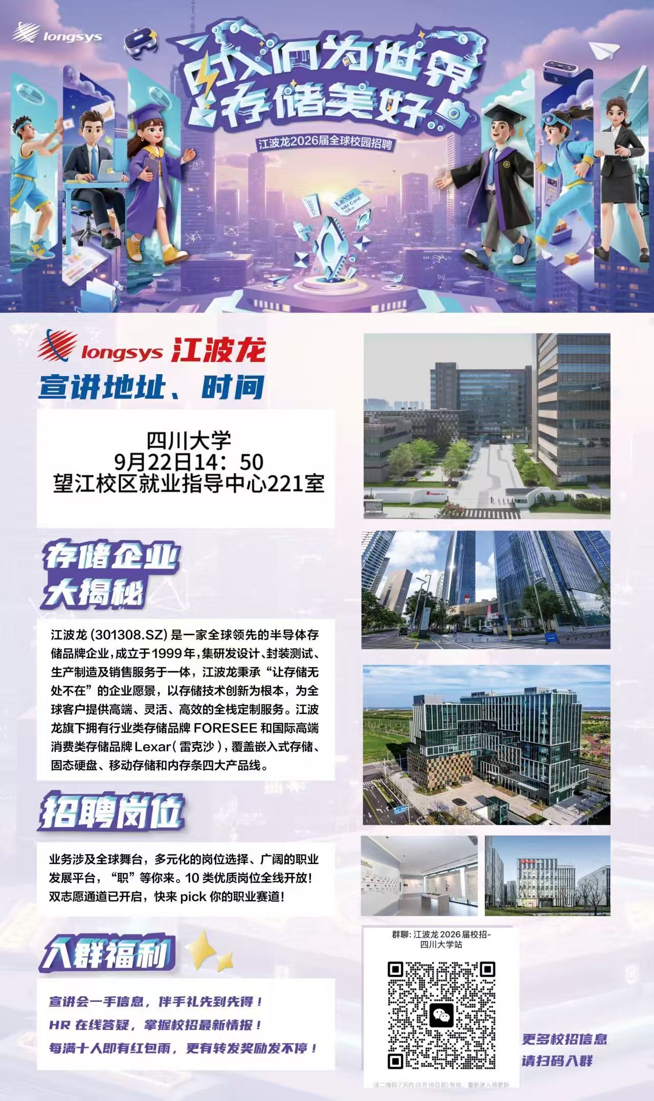🔥江波龙x四川大学专场宣讲会🔥强势来袭