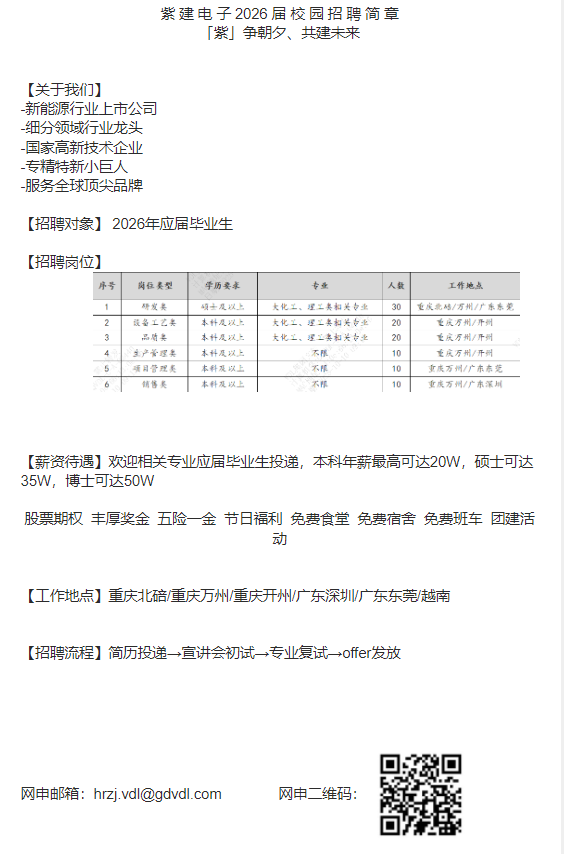 【宣讲推荐】重庆市紫建电子股份有限公司