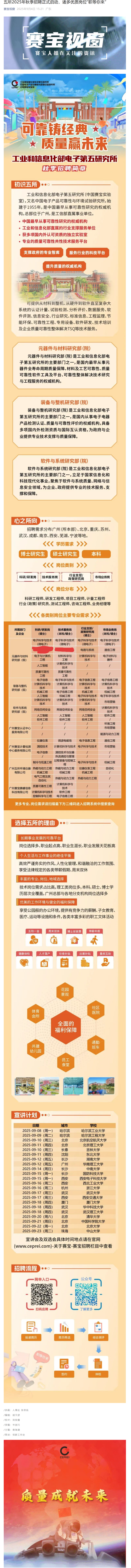🌟活动类型:宣讲会四川大学的同学们看这里!电子五所(中国赛宝实验室)—— 国家级研究所,成立已经 70 载,总部在广州,岗位覆盖全国,开放科研岗、技术服务岗、市场岗,招聘电子类、计算机类、软件类、仪器类专业~不仅有稳定广阔的职业发展空间、竞争力的薪酬、五险一金、周末双休,单位还有配套教育、体育会馆和医务室,本科、硕士、博士都有对应岗位,26 届同学们千万别错过~