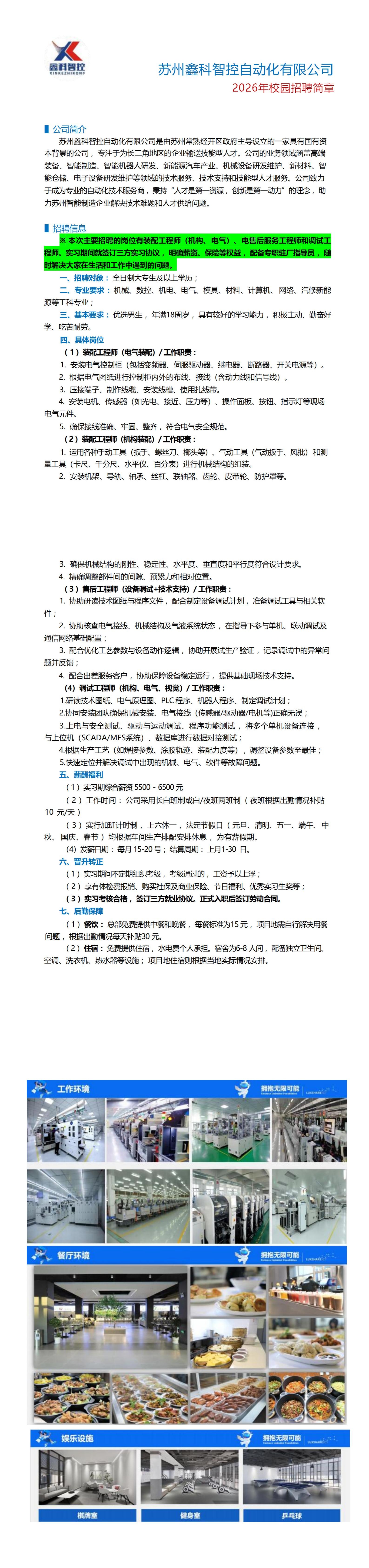 苏州鑫科智控自动化有限公司2026校园招聘
