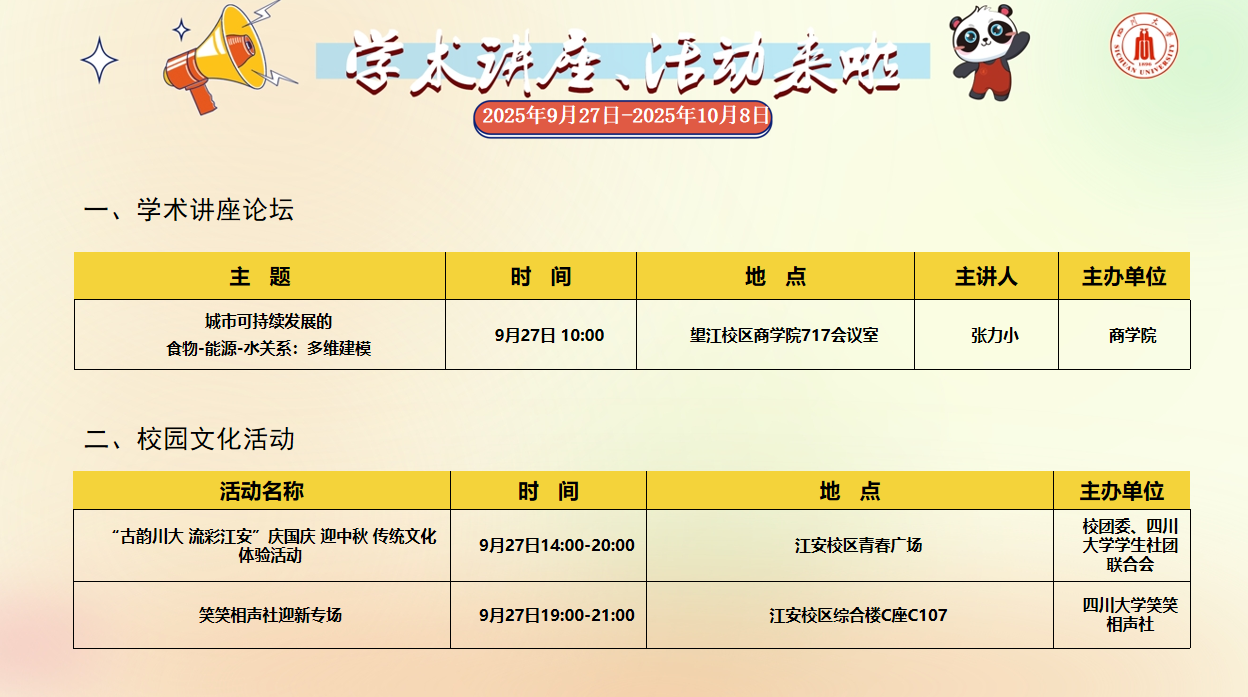 2025年9月27日-2025年10月8日学术讲座、活动安排
