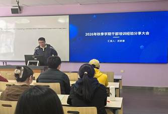 随后,班长武家豪同学结合自身工作经历,分享了学生干部在服务同学、统筹事务中的经验与感悟,从任务分配、应急处理、心态调整等角度,为在场干部提供了可借鉴的实践思路。