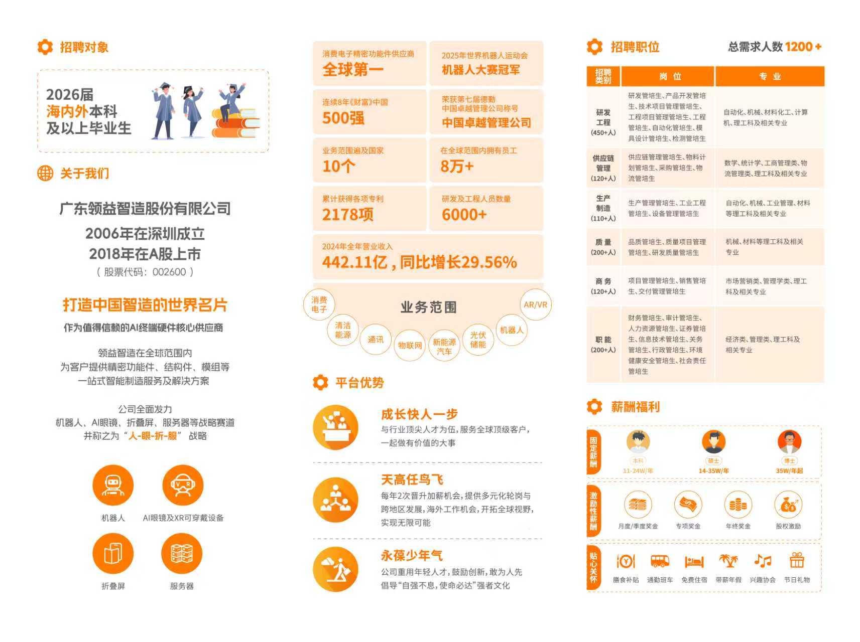 领益智造,成立于2006年,是全球精密功能件的龙头企业,也是中国智能制造的领军者!🌍 在全球精密功能件市场中,我们稳居NO.1,荣膺《财富》中国500强、中国民营500强及中国制造业500强企业!💪