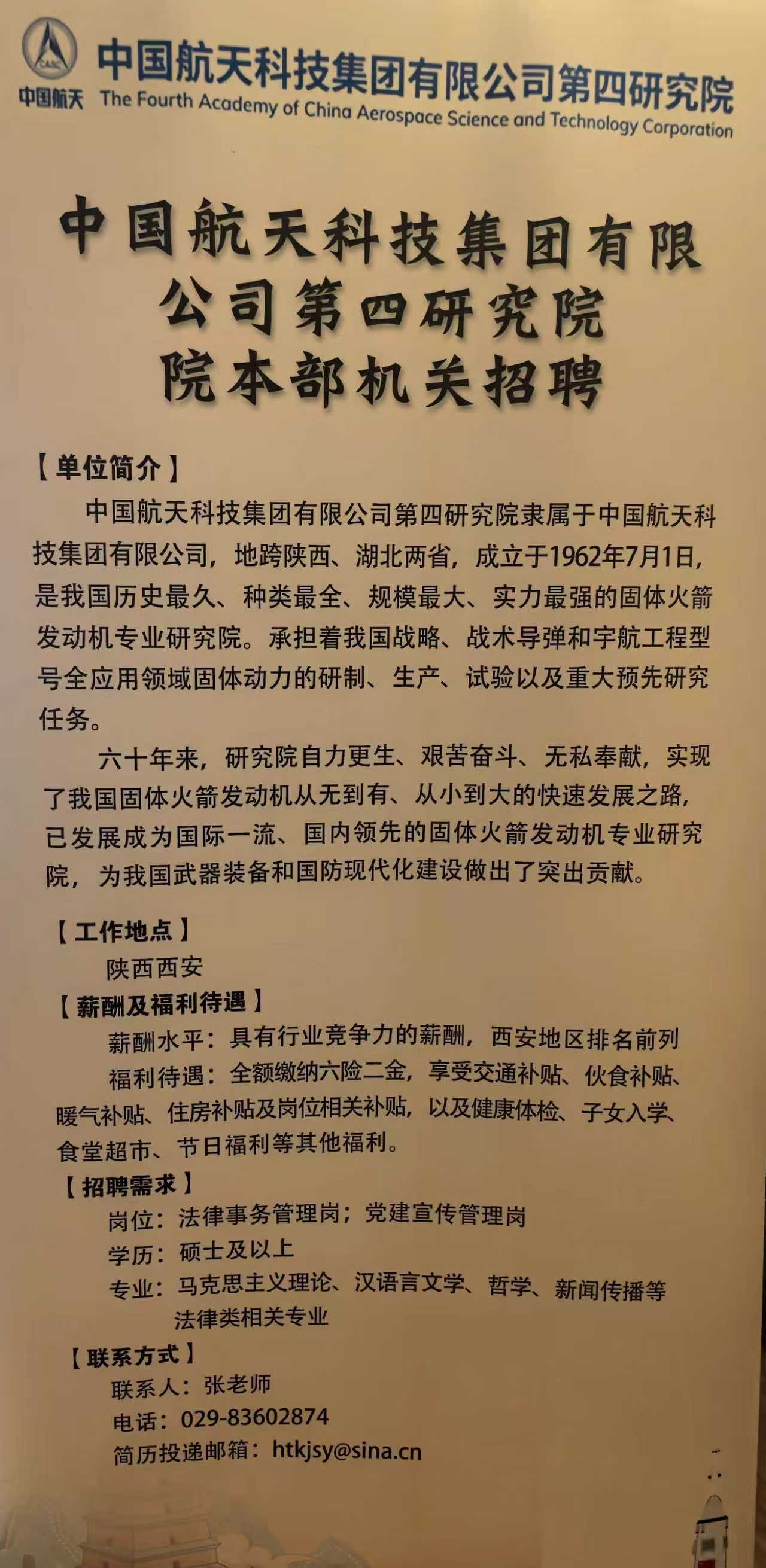 中国航天科技集团第四研究院招聘