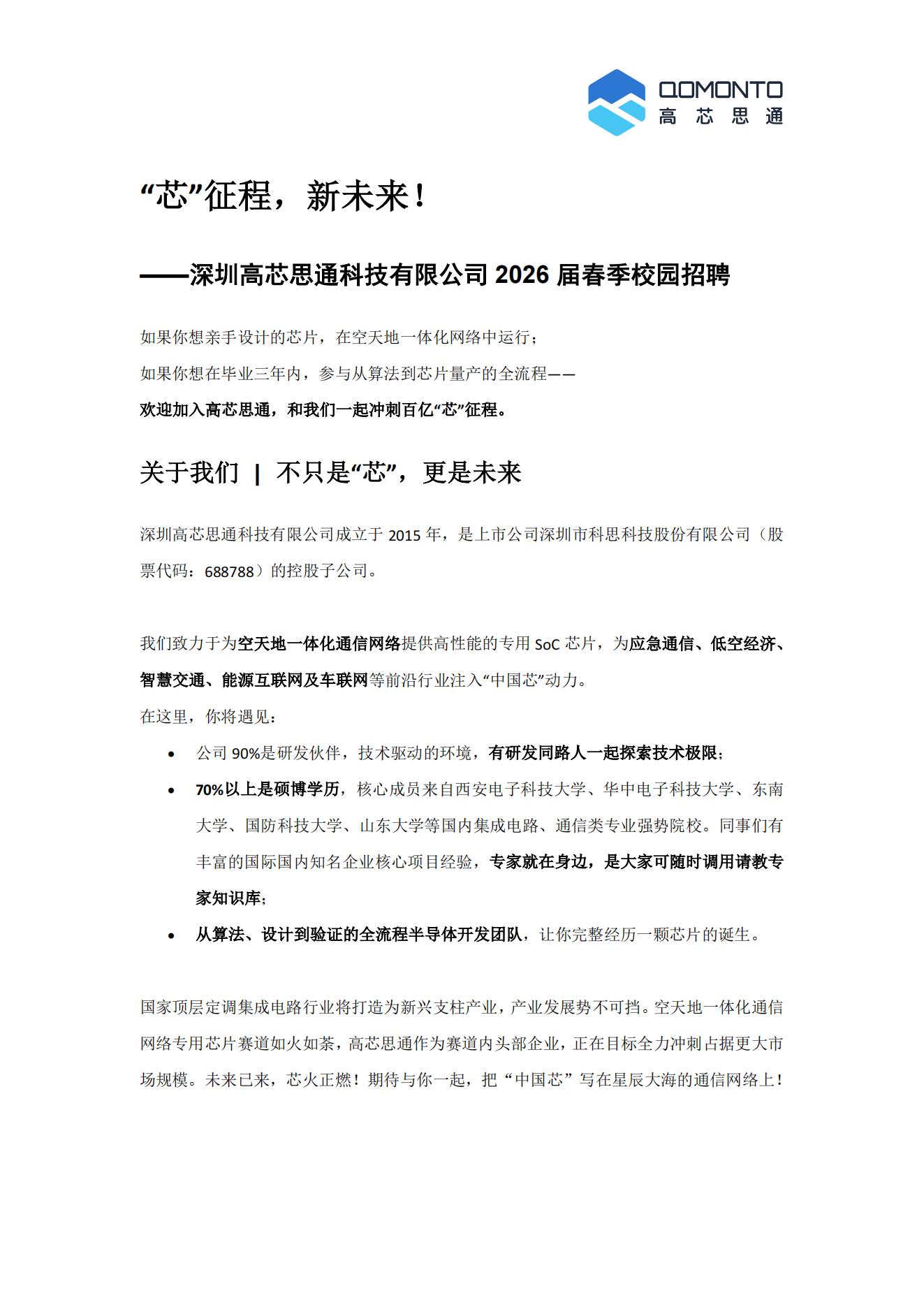 深圳高芯思通科技有限公司2026届春季校园招聘