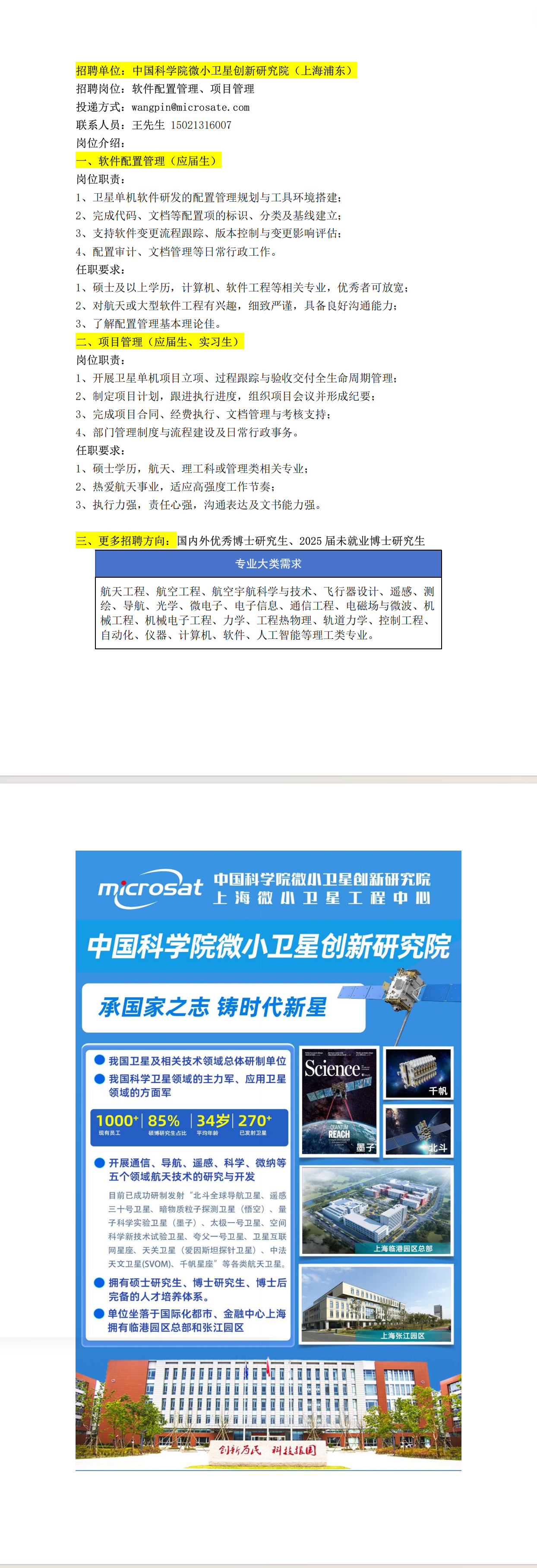 中国科学院微小卫星创新研究院(上海浦东)校园招聘